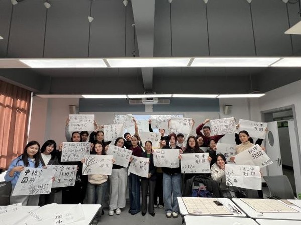 汪红君教授以“汉字的文明轨迹”为切入点,将文字形态变化与中华历史文化发展相融合,让留学生们直观感受汉字的文化底蕴。实践环节,汪红君教授聚焦“中国杭州”四字隶书书写,从握笔姿势、运笔力度到结构布局,逐一细致指导,帮助留学生们掌握隶书“蚕头燕尾、一波三折”的独特笔法。巴基斯坦的留学生阿卜杜勒表示,“每个汉字都有故事,写好一笔一划这么有讲究,近距离触摸中国书法的艺术魅力,让我更想了解中华文化了。”
