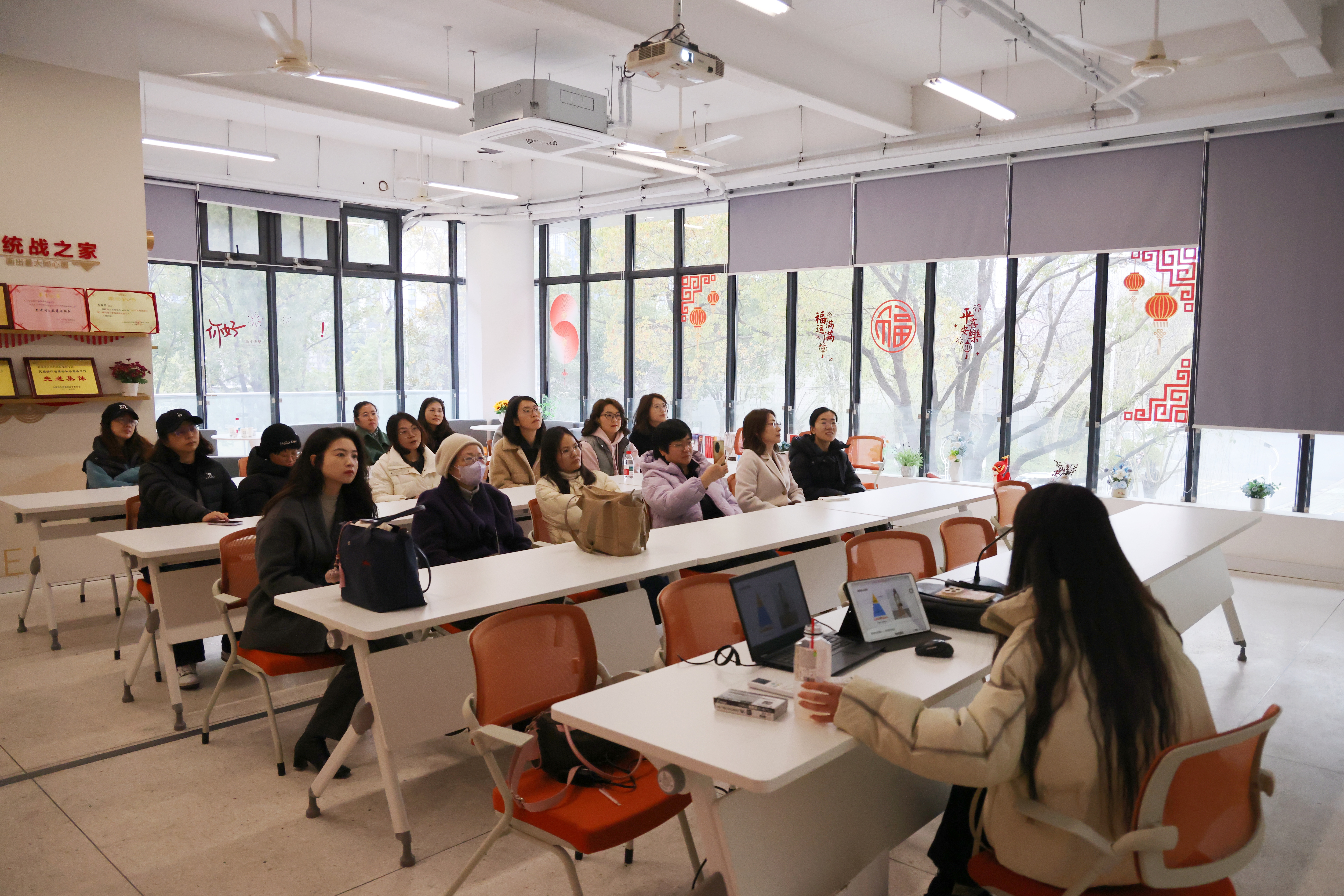 活动首日,多项内容丰富、形式多样的活动在两校区同步开展。在“风尚美学”服装穿搭技巧讲座现场,专家围绕色彩诊断与穿搭智慧进行讲解。讲座外大厅同步开设的服饰搭配体验区,专业搭配师为到场女教职工提供个性化穿搭指导,现场气氛热烈。与此同时,“光影定格”春日主题摄影活动也在有序进行,用镜头定格女教职工们的笑容,记录下属于自己的美丽瞬间。
