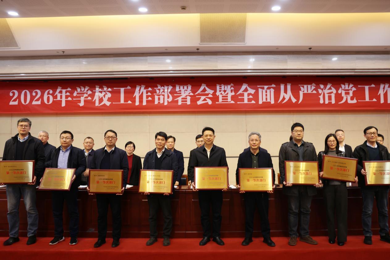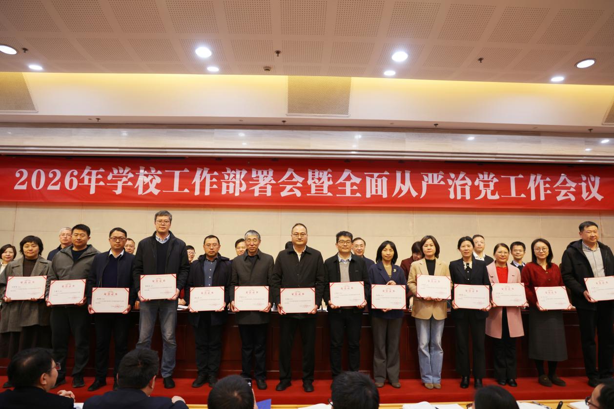 3月13日,学校召开干部教师大会,表彰2025年度考核优秀集体和个人,部署2026年重点任务和全面从严治党工作。校党委书记钱天国主持会议并讲话。校长万健部署2026年重点工作。校党委副书记吴小英通报2025年度校内综合考核结果。校纪委书记徐旭东部署全面从严治党有关工作。