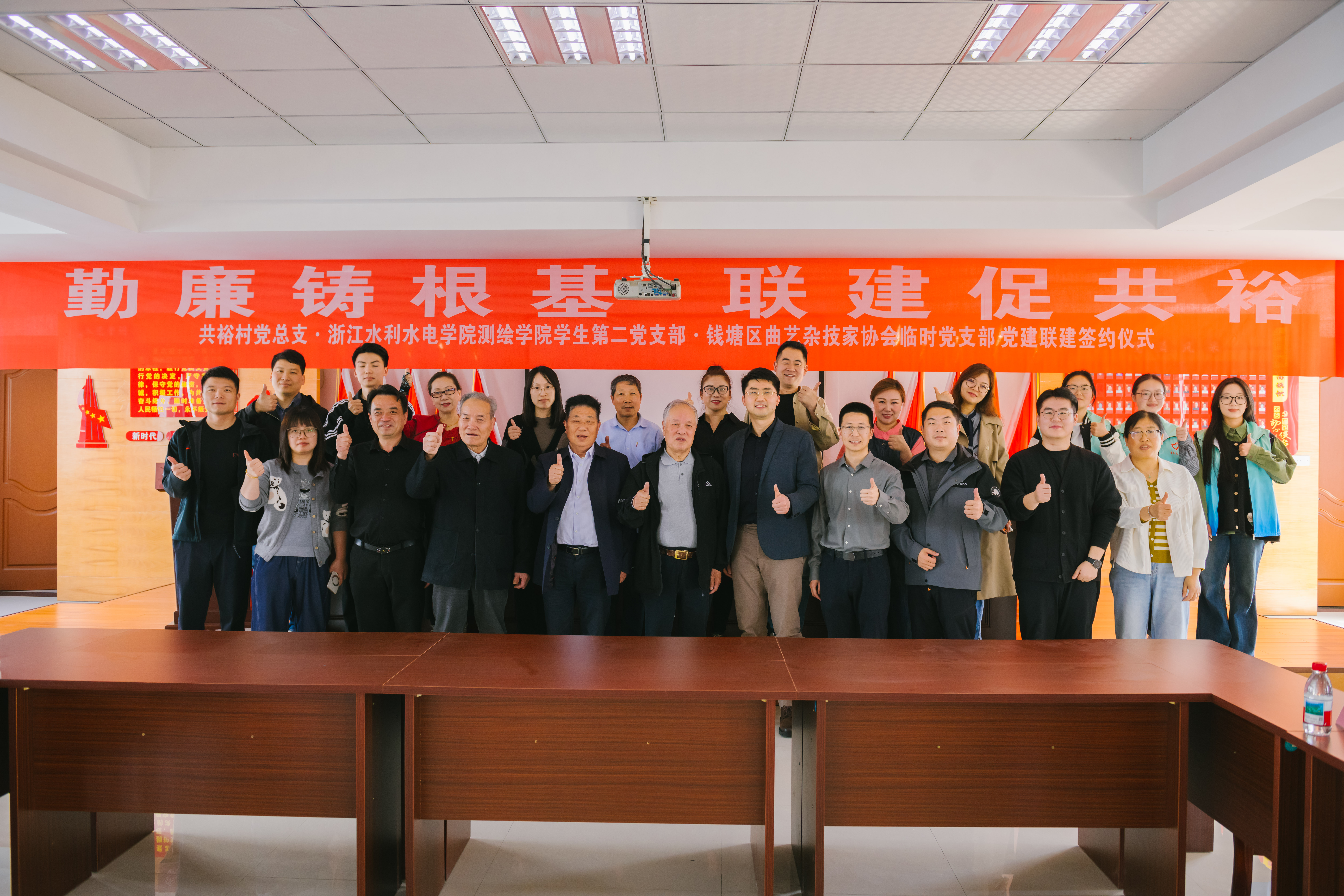 近日,测绘学院党总支走进钱塘区新湾街道共裕村,与共裕村党总支、钱塘区曲艺杂技家协会临时党支部共同举行三方党建联建签约仪式。测绘学院党总支副书记傅琪、学生第二党支部书记吴伟泉及学生党员代表参加活动。