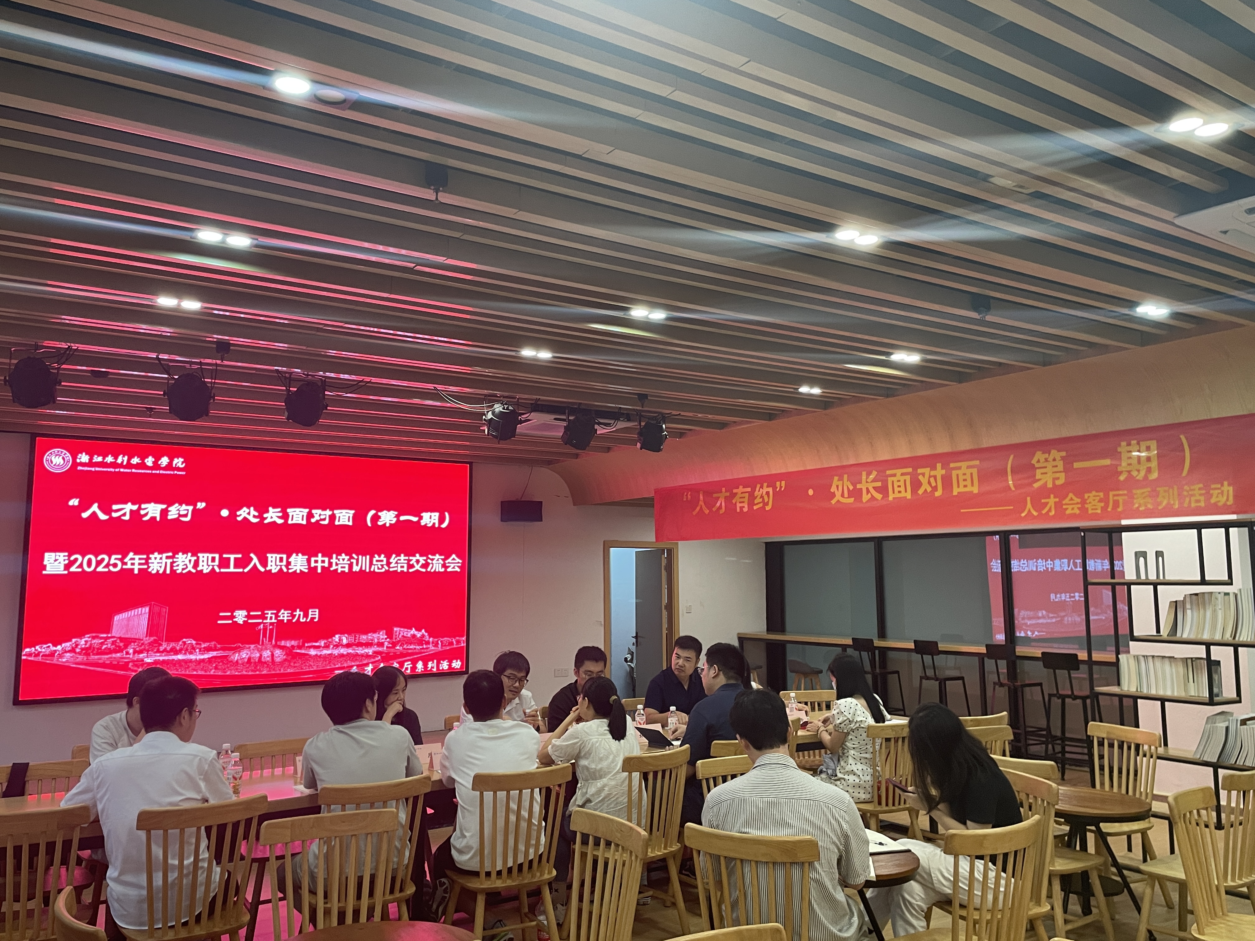 为了进一步优化人才成长环境、畅通沟通渠道,9月28日下午,“人才有约”·处长面对面第一期活动暨2025年新教职工入职集中培训总结交流会在钱塘校区举办。人事处处长王维汉、副处长徐栋与近20名新进教师代表共聚一堂,进行面对面深入交流。