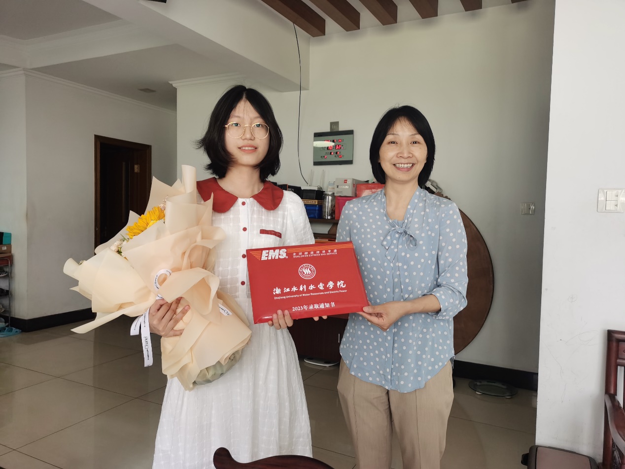 7月24-25日,水环学院党委书记吴婉玲,党委副书记朱一佳分别前往金华市东阳市和湖州市南浔区为水环学院2023级新生马诺涵和刘闻博同学送去录取通知书。9月,马诺涵和刘闻博同学将进入智慧水利和水利水电工程专业学习。