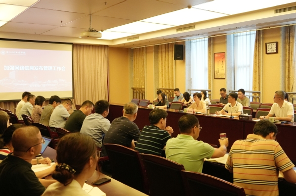 9月13日上午,学校在钱塘校区教学科研综合楼407会议室召开加强网络信息发布管理工作会,传达落实省水利厅关于加强政务信息公开发布工作会议精神、省水利厅关于加强网络安全保障工作会议精神,研讨优化二级网站群访问权限工作。校党委副书记吴小英主持会议并作总结讲话。党委委员、宣传部部长吴云鑫,现教中心主任徐政治分别对下阶段有关工作进行了布置。学校各部门、各单位宣传工作负责人及通讯员、网站管理员参会。