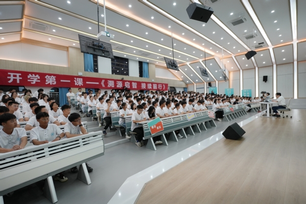 9月15日晚上,党委书记钱天国以《溯源启智 接续前行》为主题,从溯源、传承和展望三个篇章,在南浔校区为2023级全体新生讲授了一堂兼具家国情怀与责任担当,充满历史底蕴、哲学意味和未来气息的开学第一课。