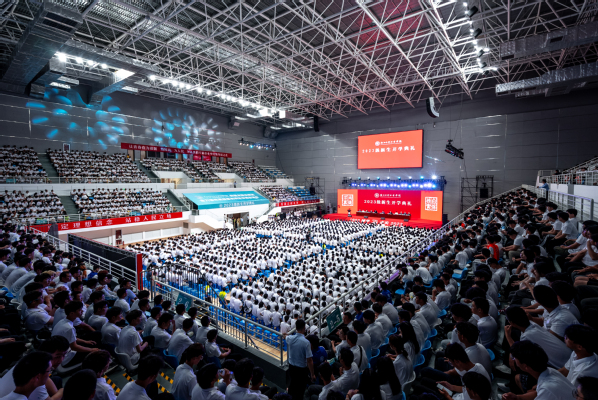 本次开学典礼首次在南浔校区体育馆设立主会场,在大剧院设立分会场,典礼精心准备了暖场环节,《红日》《你的答案》《星辰大海》《弄潮青春》《青春就在今天》等节目以悠扬动感的旋律点燃全场热情。《八面威风》院旗展示环节随着大家的呼喊声把开学典礼推向了小高潮。典礼进行过程中,全体新生意气风发、神采飞扬,会场掌声不断,以蓬勃的姿态开启人生新阶段。