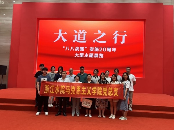 为进一步学习领会“八八战略”赋能浙江的伟大实践,9月20日下午,马克思主义学院党总支组织党员教师赴浙江展览馆参观“大道之行——‘八八战略’实施20周年大型主题展览”。