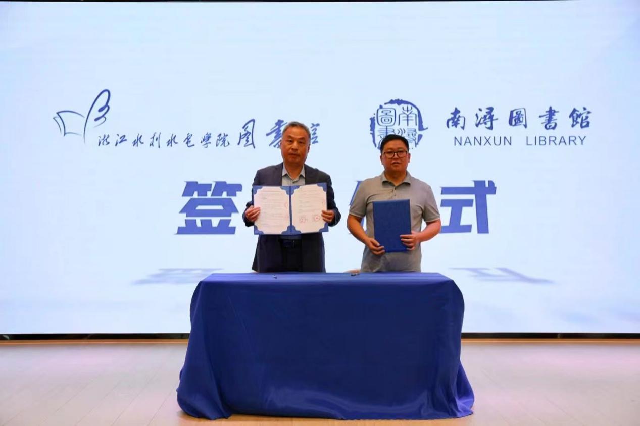 9月23日,我校图书馆馆长刘军与南浔区文化和广电旅游体育局党组成员、副局长沈利民在南浔区图书馆共同签订“浙江水利水电学院图书馆与南浔区图书馆合作协议”。该协议旨在充分发挥两馆资源优势,为社会大众及我校师生提供更优质的文化服务。