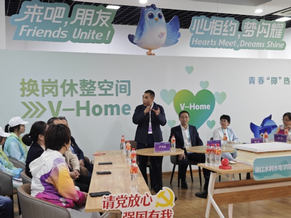 严齐斌一行先后走访了场馆FOP竞赛流线、竞赛综合事务区、竞赛技术运行区、观众服务区等地,深入赛场一线了解我校“小青荷”的服务情况。严齐斌与“小青荷”们亲切交流,充分肯定了“小青荷”们的辛勤付出,询问了解志愿服务期间的保障情况及团队总体情况,勉励“小青荷”们珍惜这宝贵的人生经历,以更加饱满的热情和良好的精神风貌积极工作、热情服务,努力完成好亚残运会志愿任务,向世界展示水院的青春力量、展示中国青年的非凡姿态。
