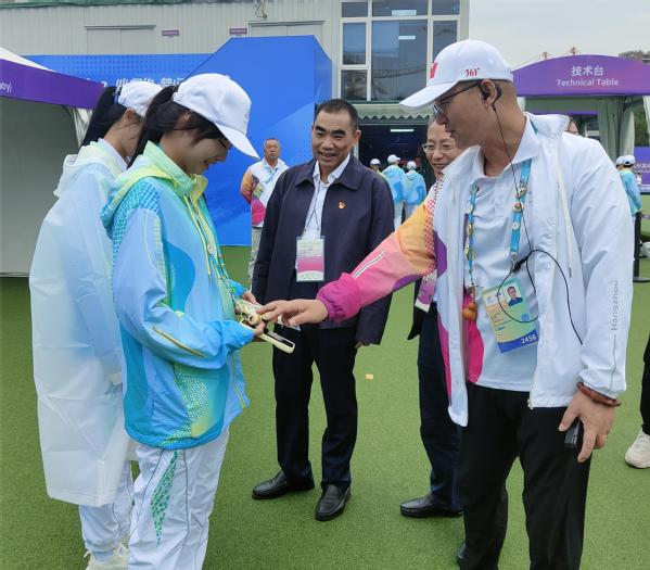 10月20日,在杭州第4届亚残运会倒计时2天之际,学校党委副书记严齐斌到访杭州文汇学校草地掷球场,慰问我校坚守岗位的“小青荷”们。杭州市教育局党委书记、场馆指挥长钮俊,杭州市教育局党委副书记、场馆常务副指挥长陈萍,校党委委员、组织部部长傅世平,场馆秘书长严丽萍,组织部副部长杨健、李政等出席慰问活动,杭州文汇学校草地掷球场志愿者管理团队全体人员参加活动。