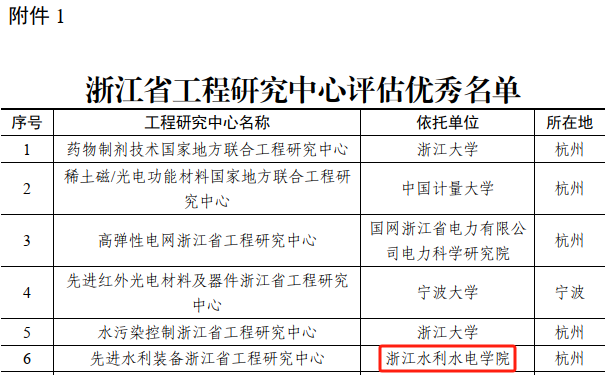 此次评估的对象是2020年及之前认定的187家浙江省工程研究中心,其中29家被评为优秀,我校“先进水利装备浙江省工程研究中心”名列其中。这是“先进水利装备浙江省工程研究中心”在去年8月省发改委对2019年获批的省工程研究中心建设及运行情况评估中获评优秀后,再次取得新成绩。
