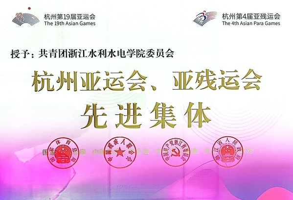我校团委获得国家体育总局、中国残联、中共浙江省委、浙江省人民政府授予的“杭州亚运会、亚残运会先进集体”;1人获得国家体育总局、中国残联、中共浙江省委、浙江省人民政府授予的“杭州亚运会、亚残运会先进个人”,4人获得浙江省委办公厅、浙江省人民政府办公厅授予的“杭州亚运会、亚残运会浙江省先进个人”。