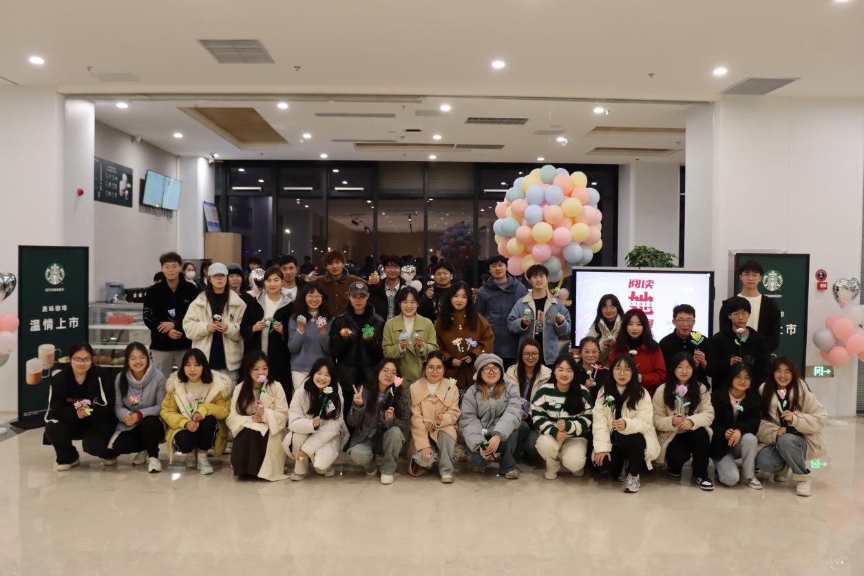 在图书馆一楼的星巴克咖啡吧,来自学校20余个学生社团的负责同学共聚一堂,一起制作扭扭花,探讨女性话题,分享阅读感悟,感受“她”力量。活动现场气氛热烈,同学们朗诵了诗歌《巾帼颂》,用饱含深情的语言向女性致以崇高的敬意;他们积极发言,分享了自己对女性形象的认知;女生们找到适合自己的形容词并讲述了自己最勇敢的经历。