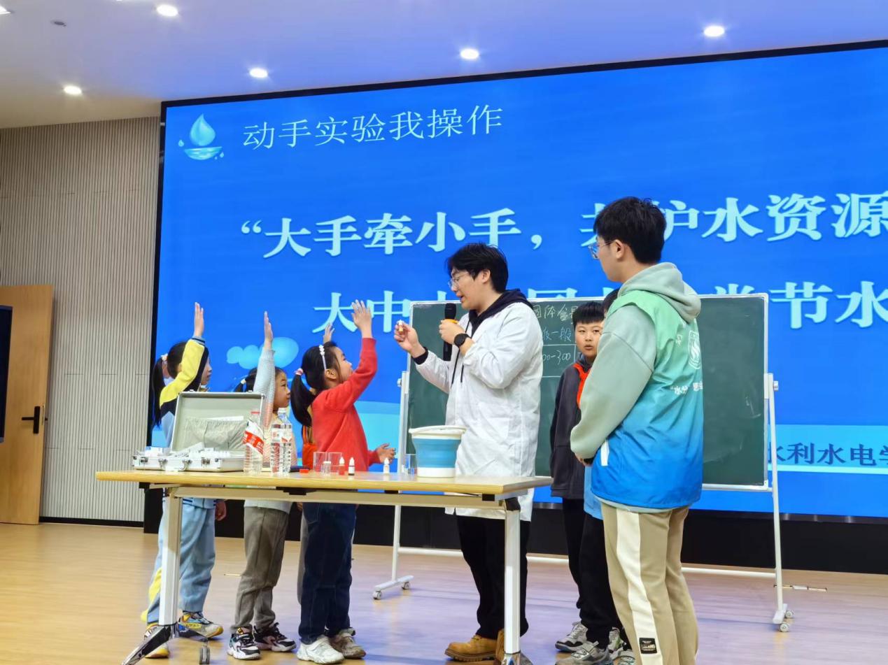 “小溪里散步,池塘里睡觉,江河里奔跑,海洋里舞蹈,小朋友们猜猜这是什么呀?” 实践队员们转化成一个个小老师,通过猜谜语、讲故事、有奖问答,开展了水情教育及水法律法规知识普及,情景化演绎了爱水、护水、节水小知识。