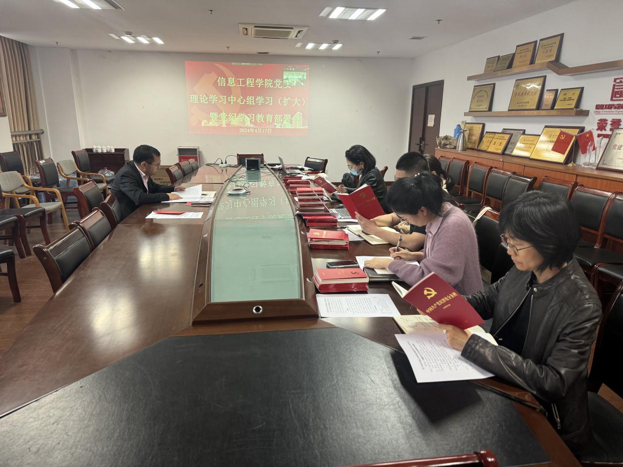 4月17日,信息工程学院召开党委理论学习中心组(扩大)学习会暨党纪学习教育工作部署会,按照“早部署、早安排、早落实”的工作要求,对学院党纪学习教育工作进行动员部署。学院党委书记张运涛主持会议,学院党委委员、党支部书记、党支部副书记、专职组织员参加学习。