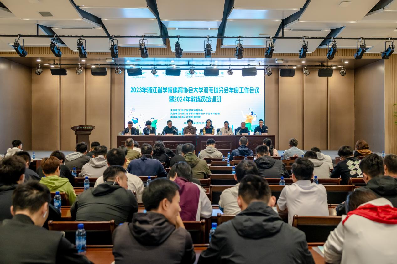 4月18-21日,浙江省学校体育协会大学羽毛球分会年度工作会议暨高校羽毛球教练员培训班在我校南浔校区顺利召开。浙江省学校体育协会常务副秘书长姜丽,浙江省学校体育协会常务副秘书长陈平,校体军部主任李亚慰,浙江省学校体育协会大学羽毛球分会主席颜意娜,浙江省学校体育协会大学羽毛球分会副主席童建民、卢晓文、沈军以及来自全省高校133名教练员参加了会议。会议由童建民主持,李亚慰致欢迎词。