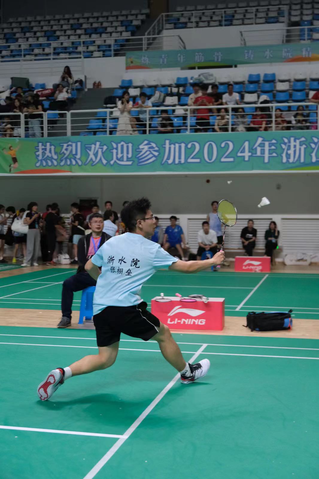 近日,2024年浙江省大学生羽毛球(甲丙组)锦标赛开幕式在我校南浔校区体育馆举办。副校长李政辉、浙江省学校体育协会常务副秘书长姜丽、浙江省学校体育协会大学羽毛球分会主席颜意娜、南浔区文化和广电旅游体育局副局长沈懿、浙江省学校体育协会大学羽毛球分会副主席童建民和沈军、浙江省学校体育协会大学羽毛球分会秘书长毛志强及本次赛事裁判长陈坚坚等出席开幕式。开幕式由体军部主任李亚慰主持。