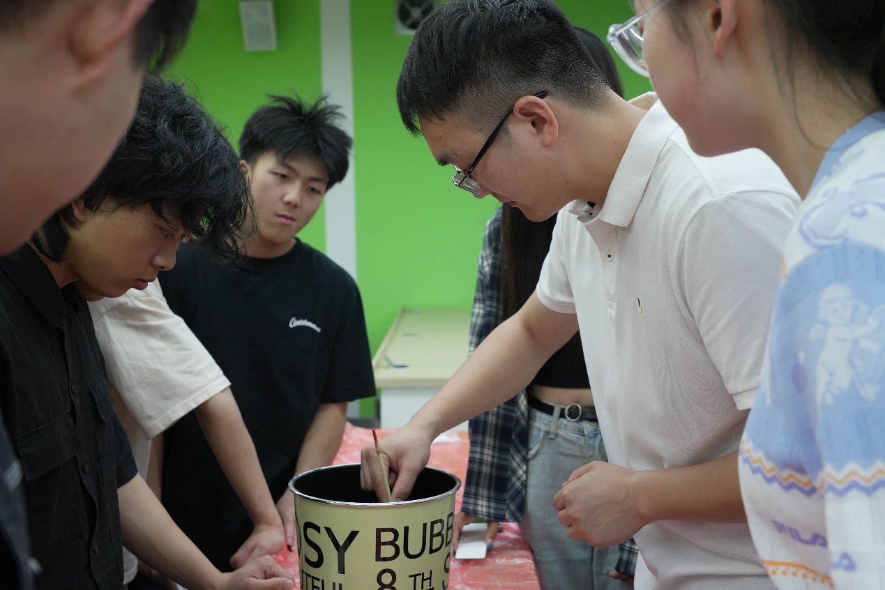 今年6月8日是第八个“文化和自然遗产日”,当天,在南浔校区的智慧教室里,一群青年学子正全神贯注地跟着指导老师完成漂漆书签。同学们将颜料挤入清水中,轻轻搅动水面至大漆展现出唯美的花纹,再将空白书签缓缓旋转着放入水中,窃蓝色、苏梅色、姚黄色等多种颜色的漂漆书签便显现眼前。此次活动是测市学院举办的“大漆工艺”讲吧课堂,同学们在文化和自然遗产日这一天以边听边学边练的方式,了解并学习非遗文化,既有意思又有意义。