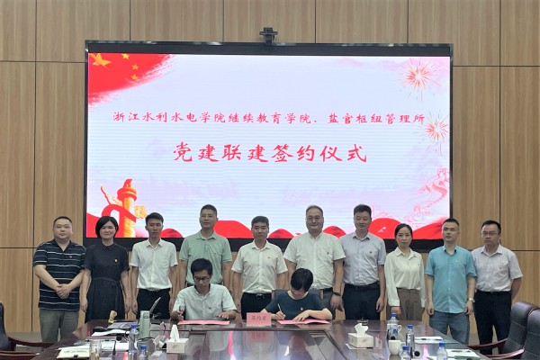 为进一步落实省委关于“三支队伍”建设的部署要求,构建资源共享、优势互补、互相促进、共同提高的党建工作新格局,7月10日,我校继续教育学院与海宁盐官枢纽管理所举行党建联建签约及“继续教育基地”授牌仪式。嘉兴市水利局副局长包军、继续教育学院院长马福君,浙江省水利科技推广中心技术发展科副科长罗林峰、海宁市水利局副局长朱朔毅、盐官镇人民政府副镇长姚心怡等参加了本次活动。