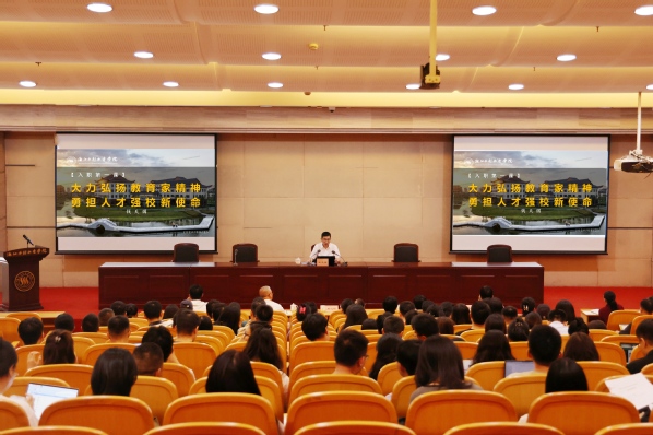 9月25日下午,校党委书记钱天国以“大力弘扬教育家精神、勇担人才强校新使命”为主题,从学校70余年历史溯源与文化传承入手,围绕时代主题、发展愿景和责任担当,为新教职工讲授“入职第一课”。