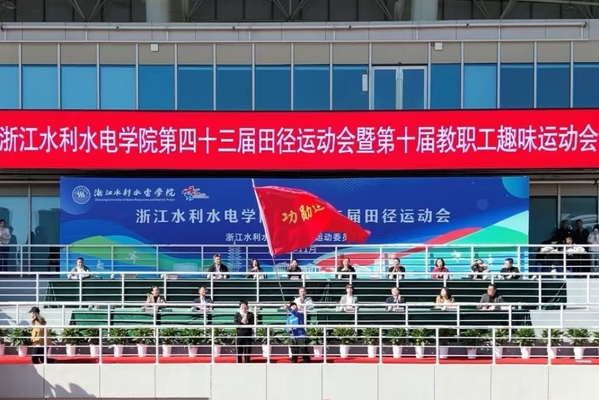 11月7日上午,浙江水利水电学院第四十三届田径运动会在南浔校区田径场开幕。校长万健宣布运动会开幕,党委副书记吴小英为校田径代表队授旗, 副校长李政辉致词。湖州市体育局党组书记、局长徐旭萍,党组副书记、副局长杨少章等湖州市体育局相关领导,九个二级学院负责人、学工部等相关部门负责人及千余名师生参加开幕式。